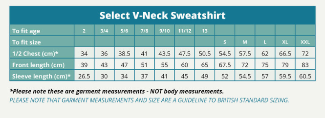 The Select V-Neck Sweatshirt features a comfortable drop-shoulder design with a classic ribbed welt and cuffs for a neat finish. Made from a soft yet durable blend of 65% cotton and 35% polyester, this sweatshirt offers both comfort and lasting wear—ideal for everyday school use.